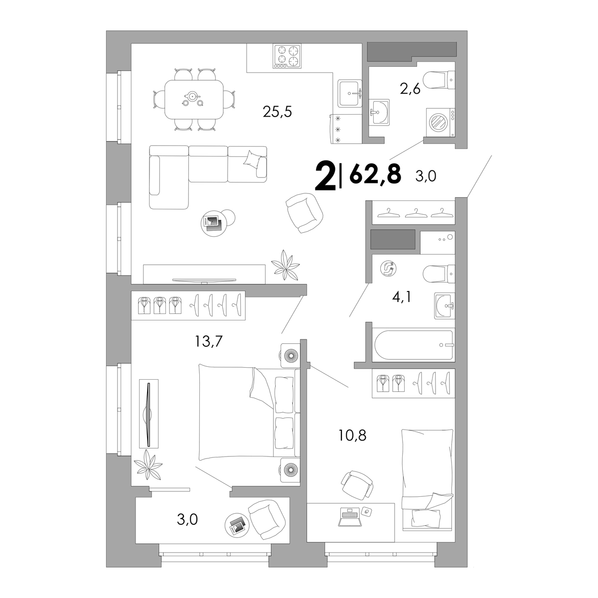 Сейчас в UNO1 действуют особенно привлекательные условия на покупку семейных вариантов - двухкомнатных квартир площадью от 60 м². В линейке представлены как нестандартные варианты с плавными, округлыми стенами, создающими особую архитектурную пластику пространства, так и популярные форматы‑«распашонки» с окнами, выходящими на разные стороны света. Такие планировки обеспечивают больше естественного освещения в течение дня и позволяют гибко организовать зонирование квартиры под разные привычки и режимы жизни членов семьи. Каждое решение продумано с учетом современных сценариев — от молодой пары до семьи с детьми и даже проживания нескольких поколений под одной крышей, чтобы квартира оставалась актуальной и удобной на долгие годы.