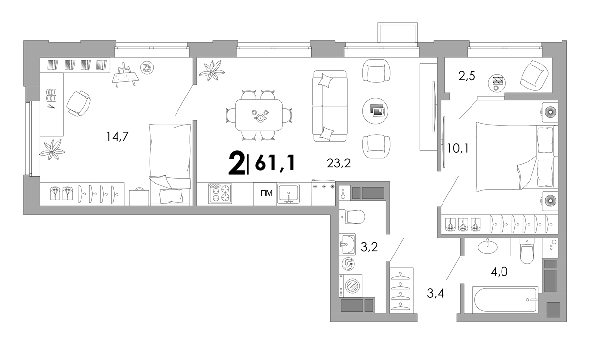 В феврале выгода по этому предложению составляет порядка 10 000 рублей с каждого квадратного метра, что особенно заметно при выборе просторных двухкомнатных форматов.